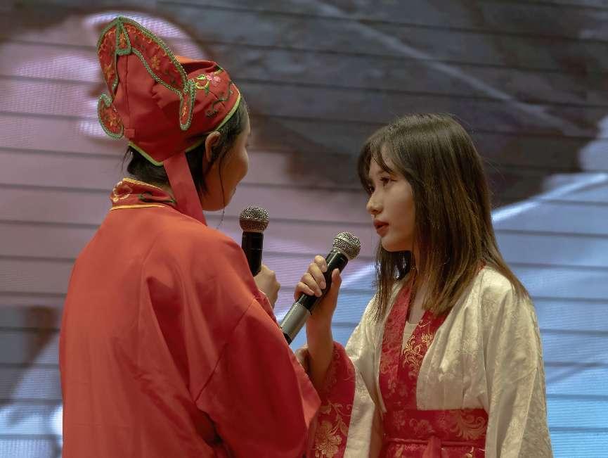 本屆大賽由國際商務外語學院團委主辦,前期準備歷時近兩個月,面向外語學院大一、大二年級所有班級展開招募,并對參賽隊伍進行了初賽選拔,有6支表現突出的隊伍成功進入決賽。決賽現場用英語、日語、法語等三語制作了特色織帶文創產品,各參賽劇目涵蓋音樂劇、懸疑劇、家庭劇、校園劇、卡通繪本等,題材豐富,內容廣泛。經過精彩激烈的角逐,最終日語2101班獲得一等獎;中英2201班、法語2202班獲得二等獎;商英2201班、中英2102班、商英2101班獲得三等獎。