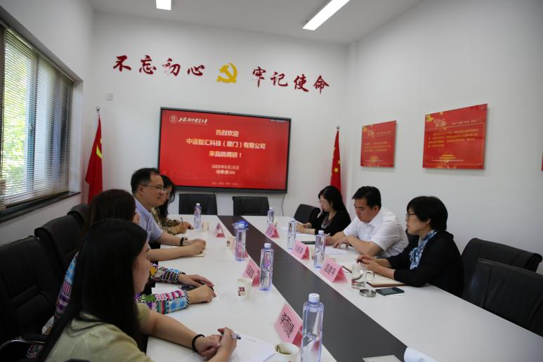 為深入貫徹《國務院辦公廳關于深化產教融合的若干意見》《上海市深化產教融合協同育人行動計劃(2021-2025年)》精神,推進校企合作,深化產學研融合,提高協同育人成效, 5月15日下午,中語智匯科技(廈門)有限公司董事長葉麟、副總經理邱澤萍、大區經理李雨婕和羅國志等一行四人前來國際商務外語學院開展調研。國際商務外語學院黨委書記劉根春、院長溫建平、副院長王玉參加了本次調研。