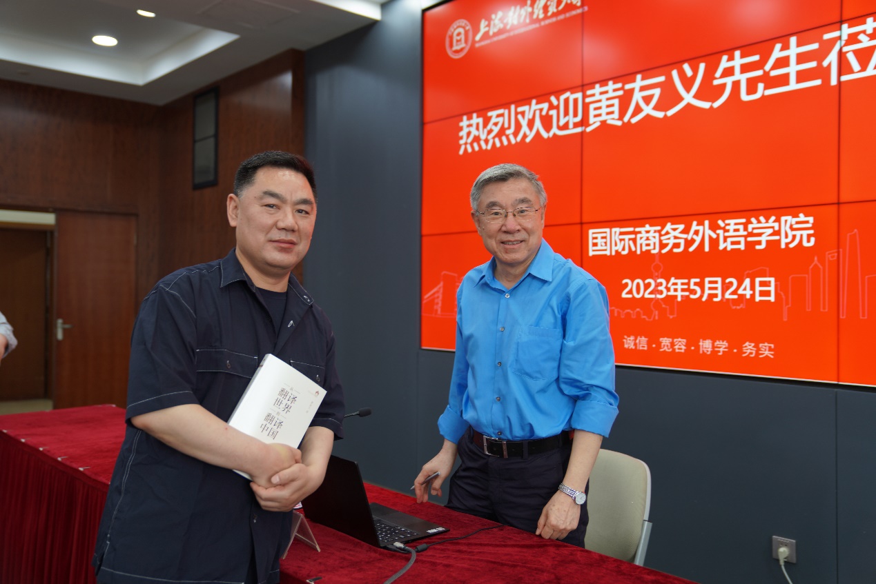 中國翻譯協(xié)會常務副會長、中國翻譯研究院副院長、中國外文局原副局長兼總編輯黃友義先生應邀蒞臨我校,為國際商務外語學院師生作了兩場精彩的學術報告。