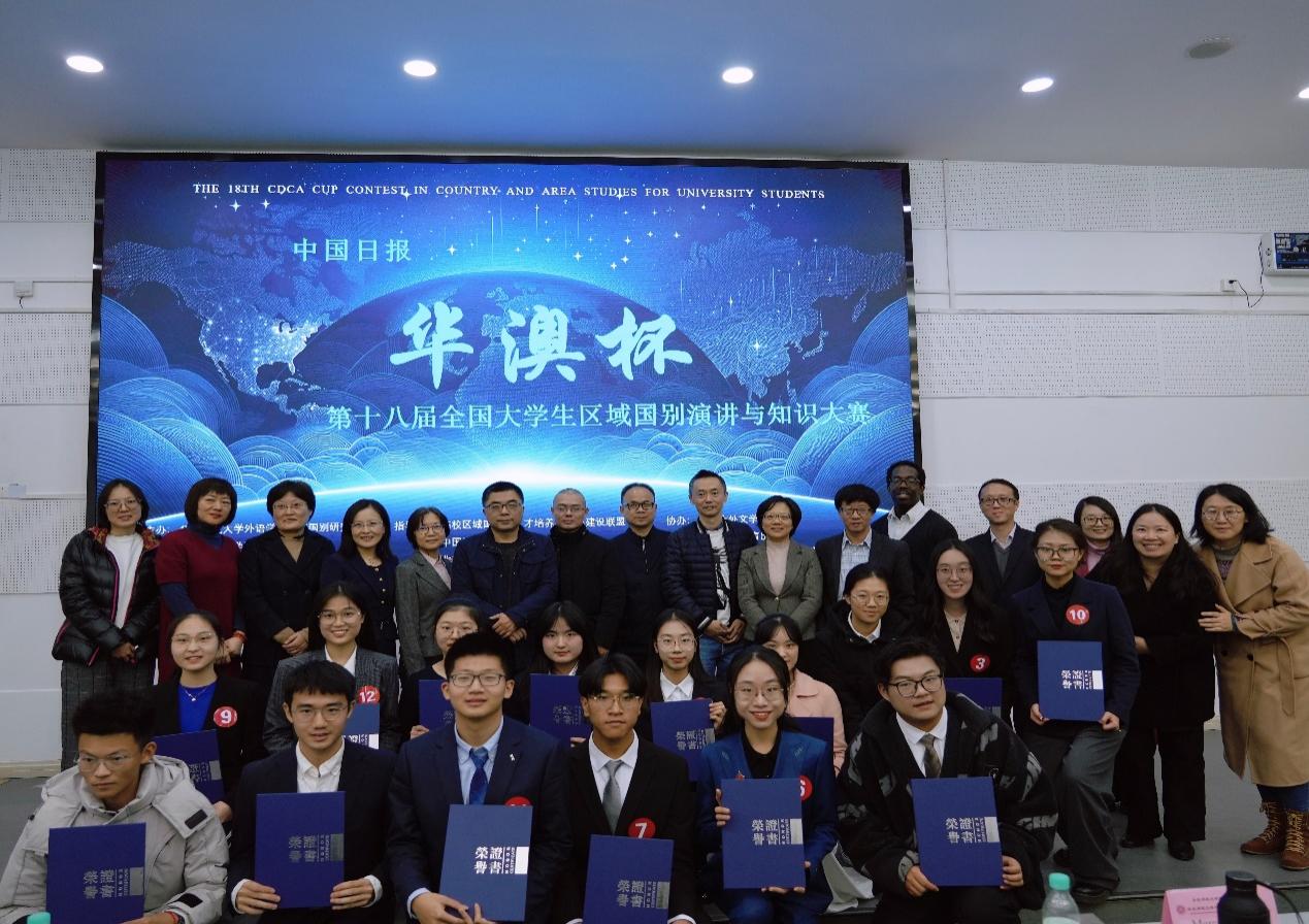12月2日,《中國(guó)日?qǐng)?bào)》“華澳杯”第十八屆全國(guó)大學(xué)生區(qū)域國(guó)別演講與知識(shí)大賽全國(guó)總決賽在華東師范大學(xué)閔行校區(qū)圓滿落幕,來自北京外國(guó)語(yǔ)大學(xué)、上海外國(guó)語(yǔ)大學(xué)、上海交通大學(xué)、同濟(jì)大學(xué)、武漢大學(xué)、安徽大學(xué)、內(nèi)蒙古師范大學(xué)等16所高校的優(yōu)秀選手展開了激烈的角逐。我院英語(yǔ)專業(yè)沈津雯同學(xué)在劉旻華與胡怡君二位教師的悉心指導(dǎo)下,認(rèn)真準(zhǔn)備、沉著應(yīng)對(duì)、全情投入,在本次全國(guó)總決賽脫穎而出,榮獲大賽一等獎(jiǎng)。