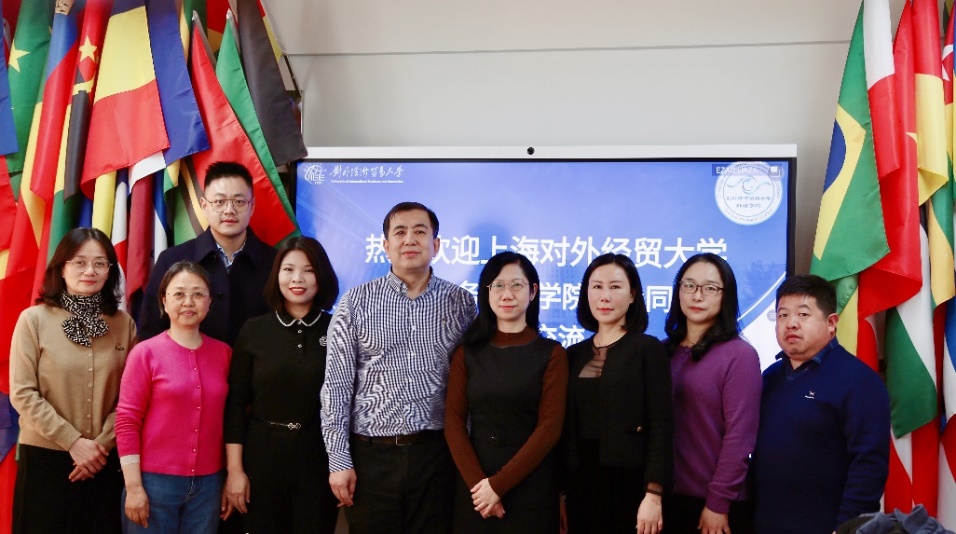 12月7日,調研團隊赴對外經濟貿易大學外語學院調研,對外經濟貿易大學外語學院書記田文泉、外語學院主管教學副院長黃慧、法語系主任桂澤元、法語系原系主任、現學院學術委員周曉幸、法語系教師王新霞參加座談和交流。田文泉書記首先首先向我院教師到訪表示歡迎,隨后介紹了外語學院發展歷史及學科建設總體情況,以國際經濟與貿易-法語雙學士學位項目為重點,介紹了近年來跨專業雙學位項目實施進展、成效及經驗,交流過程中還還介紹了以國際組織人才培養為重點的國際經濟與貿易-法學雙學士項目班情況。王玉副院長簡要介紹了上海對外經貿大學國際商務外語學院法語系建設和國際組織人才培養發展規劃等情況。雙方聚焦國際化、復合型人才培養進行了深入、熱烈的討論和交流,一致認為雙方在專業體系上同源同根,應相向而行、緊密協同、共同發展,就下一步法語系建設方向和特色打造等話題達成共識,并對雙方近期合作的具體事項進行了磋商。