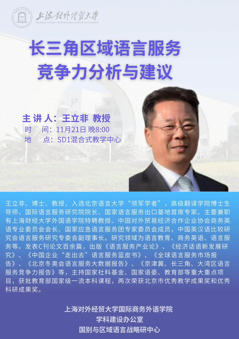 上海對外經貿大學國際商務外語學院 版權所有 地址:上海市文翔路1900號郵編:201620