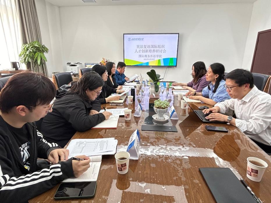 4月15日,副院長王玉、法語系系主任陳路、法語系教工黨支部書記游曉航、法語系教師代表全志鋼和魯少博與我校國際組織學院開展英法復語國際組織人才創新培養研討會。國際組織學院副院長徐昕、副書記程棟、教學秘書仝雨晨出席會議。會上雙方分別介紹了兩個學院的人才培養成效及法語專業、國際經貿規則專業等的發展現狀及面臨困境,共同探討了在國際組織人才培養、師資培訓等方面的合作可能性,并具體就課程模塊融合、海外實踐育人基地共建、學生賽事舉辦等內容展開了熱烈討論。