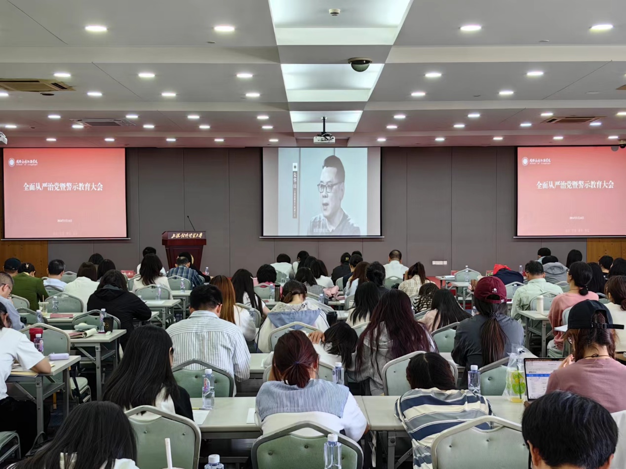 2024年5月14日,為深入貫徹落實黨的二十大精神、二十屆中央紀委三次全會精神,認真學習習近平總書記關于黨風廉政建設和反腐敗斗爭的重要論述,進一步推進黨紀學習教育走深走實,國際商務外語學院在信息樓526召開全面從嚴治黨暨警示教育大會,學院全體師生黨員出席,會議由學院黨委副書記徐峰主持。
