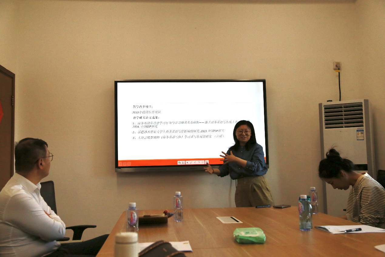 《商務英語寫作》課程負責人揭薇老師以課程建設的探索和實踐為題,簡要介紹了她在課程教學中的跨文化問題研究。