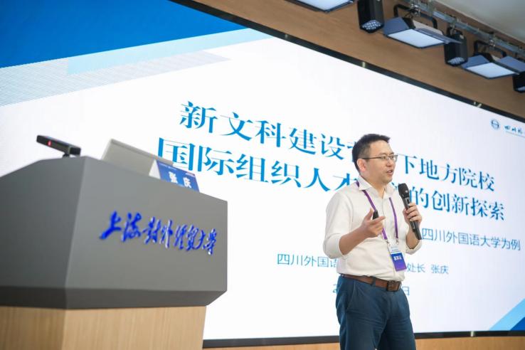 四川外國語大學教務處副處長張慶以本校人才培養設計為例,分享新文科“1368”卓越涉外人才培養模式,詳細介紹以“國際組織人才實驗班”為載體的復語復專業人才培養模式,并展示其在專業教材、教改項目、師資隊伍等方面取得的突出成果。
