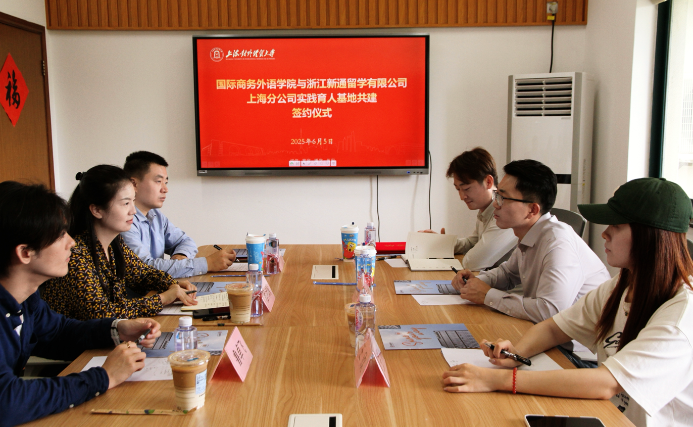 為持續推動校企聯合共建共育,2025年6月5日,國際商務外語學院與浙江新通留學有限公司上海分公司“實踐育人基地共建”協議簽約儀式在松江校區博雅樓324會議室舉行。國際商務外語學院黨委副書記程祎瞳,2023級本科生輔導員、學院就業育人工作站指導教師陳偉,2022級本科生輔導員、學院團委副書記魯卓飛,浙江新通留學有限公司上海分公司總經理張長晴、市場經理張帥、市場主管王欣等人員出席。儀式由程祎瞳主持。