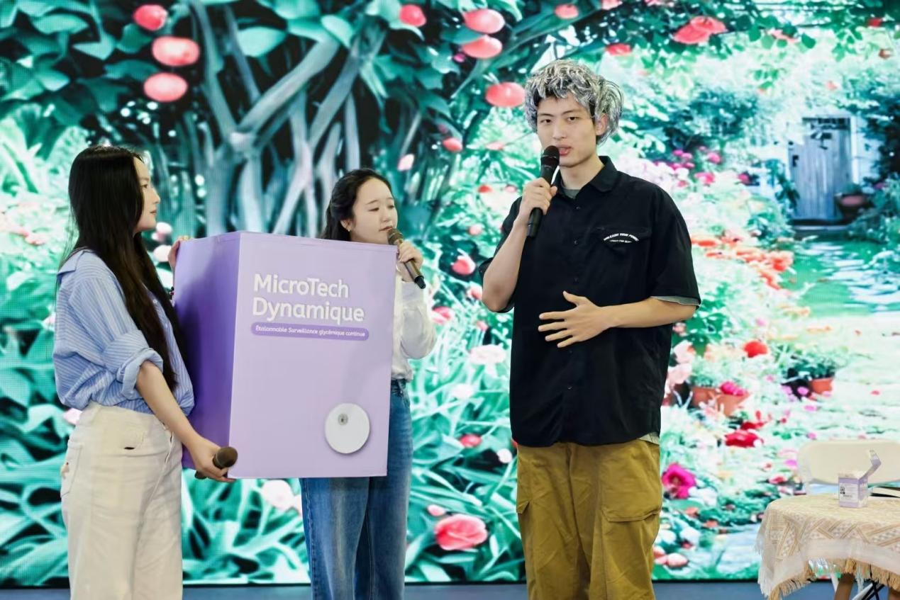 在法語(yǔ)系教師李冬冬和會(huì)展與傳播學(xué)院教師汪世超的聯(lián)合指導(dǎo)下,由法語(yǔ)系5名學(xué)生(鄭佳禾、王貝易、劉匯洋、王董文、陳顥夫)和會(huì)展與傳播學(xué)院3名學(xué)生(丁琢琦、鄒雨彤、李昀陶)組成的團(tuán)隊(duì)在本次競(jìng)賽中充分展現(xiàn)了卓越的跨學(xué)科融合能力。團(tuán)隊(duì)以微泰醫(yī)療AiDEXX動(dòng)態(tài)血糖儀為載體,聚焦全球糖尿病管理的痛點(diǎn),通過細(xì)致入微的展位設(shè)計(jì)、專業(yè)的商務(wù)談判、引人入勝的產(chǎn)品路演以及出色的商務(wù)企劃書表現(xiàn),充分發(fā)揮商務(wù)法語(yǔ)的優(yōu)勢(shì),成功將“中國(guó)智造”醫(yī)療器械推廣到國(guó)際市場(chǎng)。更重要的是,團(tuán)隊(duì)通過講述中國(guó)品牌故事,向世界展現(xiàn)了中國(guó)醫(yī)療器械的先進(jìn)技術(shù)和人文關(guān)懷,為企業(yè)“出海”提供了強(qiáng)有力的文化和語(yǔ)言支持,有效突破文化壁壘,推動(dòng)構(gòu)建全球全病程管理生態(tài),傳遞“科技關(guān)懷生命”的品牌理念,為提升中國(guó)醫(yī)療器械行業(yè)的國(guó)際影響力做出了積極貢獻(xiàn)。