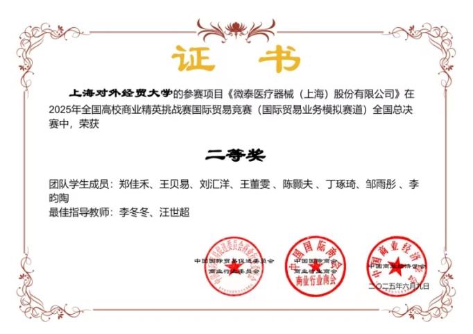 2025年6月5日至9日,我校國(guó)際商務(wù)外語(yǔ)學(xué)院法語(yǔ)系在2025年全國(guó)高校商業(yè)精英挑戰(zhàn)賽國(guó)際貿(mào)易競(jìng)賽中斬獲全國(guó)二等獎(jiǎng),續(xù)寫跨學(xué)院合作參賽的新佳績(jī)。