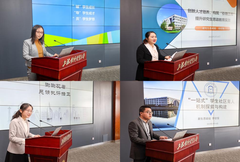 結業式上,本科生思政組于卓、研究生思政組朱紅艷、畢業班思政組顧怡文、新生思政組李欽儒作為學員代表就四個專題小組的研討情況作交流發言。