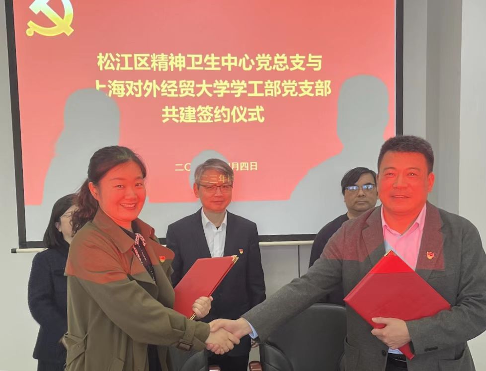 4月4日上午,學工部黨支部與松江區精神衛生中心黨總支共建簽約儀式在松江校區圖文信息樓501舉行。校黨委副書記、副校長祁明,黨委學(研)工部部長、學工部黨支部書記繆韻笛,松江區精神衛生中心黨總支書記、副院長袁軍,學校心理健康教育與咨詢中心全體老師、雙方黨員代表參加了簽約儀式。會議由繆韻笛主持。
