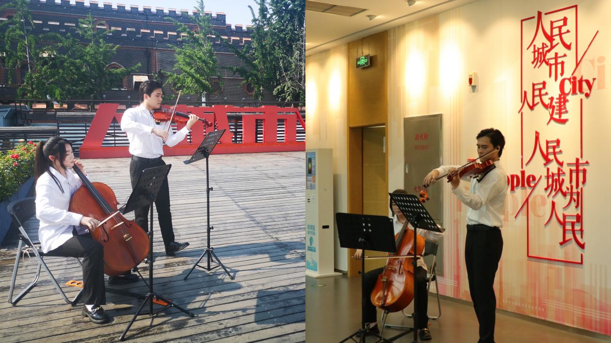 此次主題實(shí)踐通過將黨建與美育深度融合,發(fā)揮了文化藝術(shù)以文化人、以美育人的獨(dú)特作用。在“人民城市人民建,人民城市為人民”地標(biāo)處、在“初心·啟航”展廳前,國際商務(wù)外語學(xué)院魯卓飛老師和葉周靖同學(xué)聯(lián)袂展示了《我和我的祖國》《東方紅》等二重奏,以悠揚(yáng)的琴聲贊頌了“人民城市”的價值理念和“工業(yè)繡帶”變“生活秀帶”的嶄新風(fēng)貌,也引來了其他參展觀眾的圍觀和共鳴。