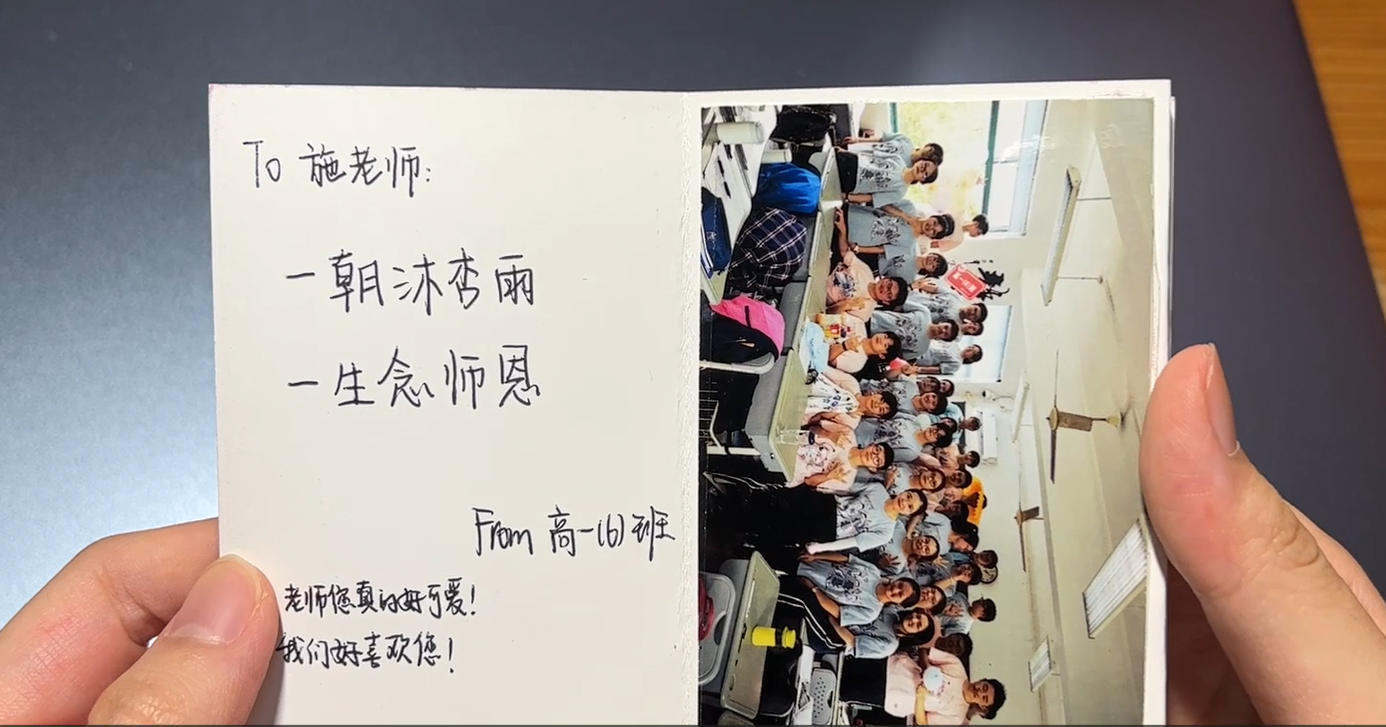 范亞鈺介紹說,之所以會做這份禮物給施老師,是因為在她看來,當一屆屆學子畢業離開校園后,這些照片會一直承載著師生之間的回憶,陪伴彼此度過漫長歲月。
