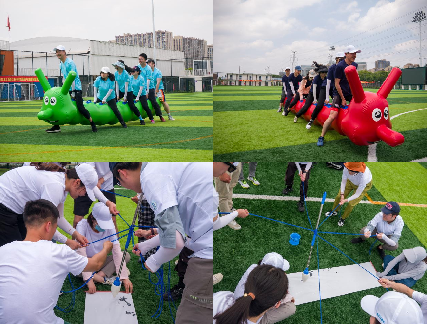 活動伊始,全體參與人員組成五支隊伍,在專業教練的帶領下進行了熱身運動。隨后,五支隊伍正式展開“同舟共濟”“神筆馬良”“攀巖長征”“同心滑索”等項目的比拼和體驗。