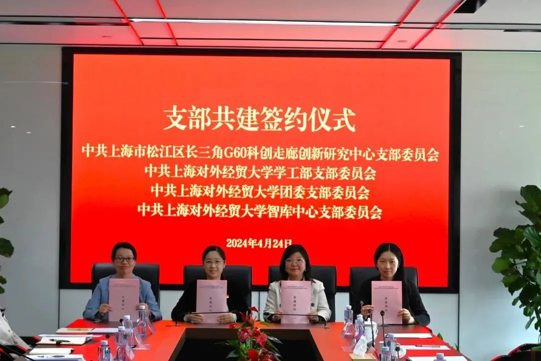 會上,學工部黨支部、團委黨支部、國際經貿創新治理研究院(智庫中心)黨支部與G60創新研究中心黨支部共同簽署支部共建協議,加強校地合作,讓黨建成為共學共研共商共建的紅色引擎,共同推動人才培養高質量發展。