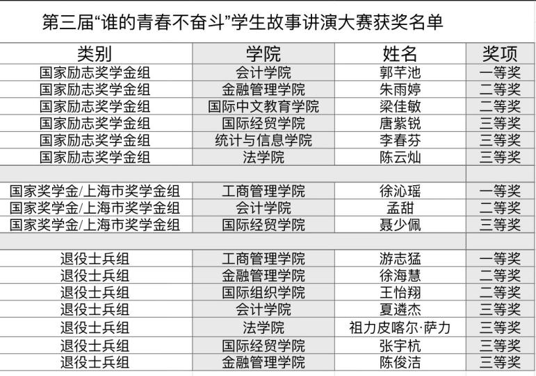 第三屆“誰的青春不奮斗”校級決賽獲獎名單如下: