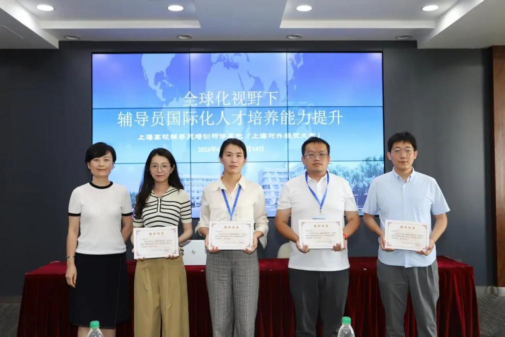 在結業儀式上,各小組學員代表進行了匯報交流。上海交通大學輔導員周奚焱、上海工程技術大學輔導員劉朝芳、上海外國語大學輔導員杜偉毅、華東師范大學輔導員史琳四位老師分別代表小組作交流發言,共同表達了對我校組織開展培訓班的感謝,并結合工作實際分享了小組討論成果和本次培訓的收獲與體會。校黨委學工部副部長張晴晴為學員代表頒發結業證書,來自上海市22所高校的44位輔導員參加培訓并順利結業。