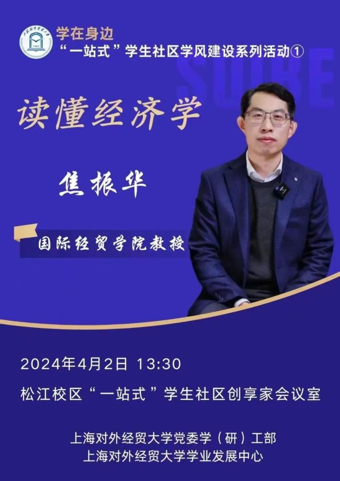 國際經貿學院副院長焦振華教授從經濟學的研究本質引出本次講座。他指出資源的稀缺性、需求的無限性以及資源用途的多樣性決定了經濟學的根本任務是尋求現實約束下資源配置的優化問題。他帶領學生回顧了微觀經濟學的課程知識,介紹了現代經濟學前沿研究中的有趣問題。他鼓勵學生拓展自己的視野,廣泛閱讀經濟學類的經典書籍,在生活中碰到各類經濟現象時可以積極分析,勇于探索,從社會學、哲學、歷史學、心理學等不學生科的視角理解認識經濟學研究。