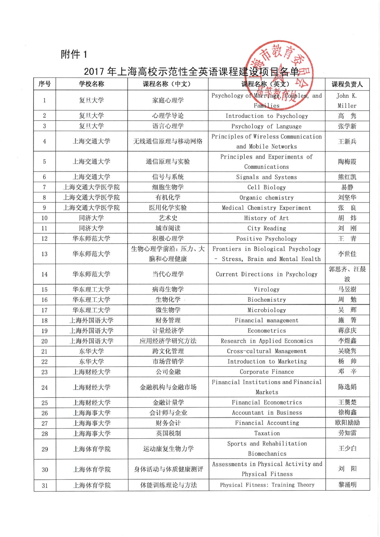 附件:1.2017年上海高校示范性全英語課程建設項目名單