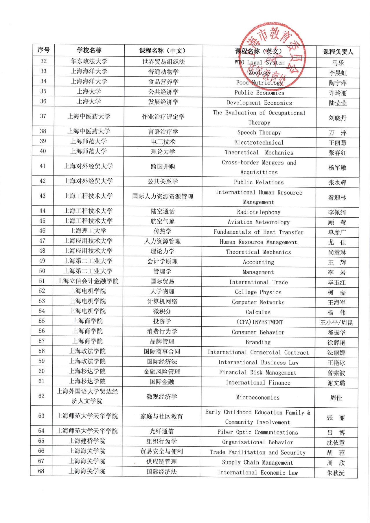 2.上海高校全英語規劃專業(2017-2019年)備案名單