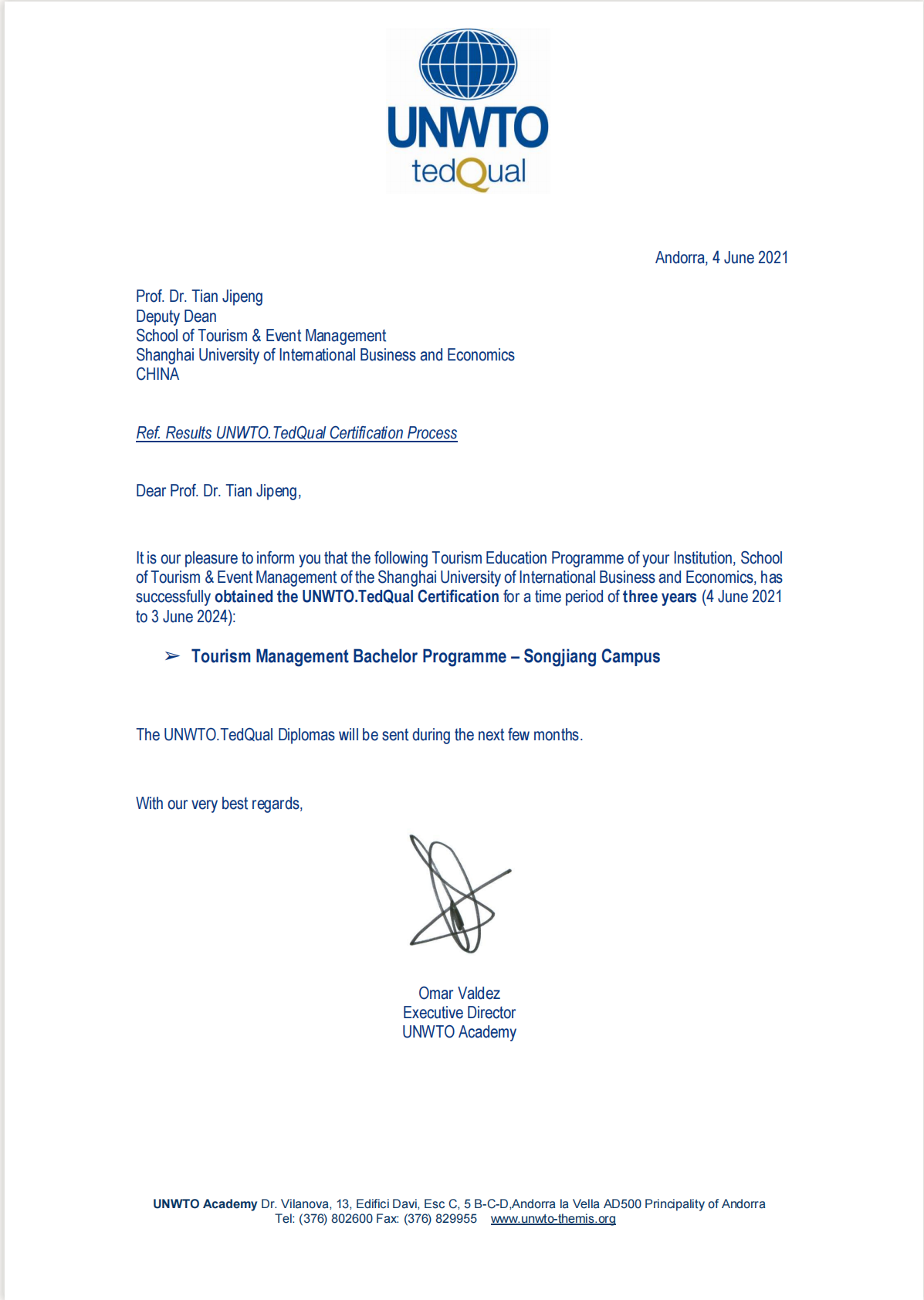 近日我校接到聯合國世界旅游組織旅游教育質量(UNWTO TedQual)國際認證機構通知,會展與旅游學院旅游管理專業(yè)通過該機構的旅游教育質量國際認證,認證有效期3年。我校成為上海市首家通過該項認證的院校。