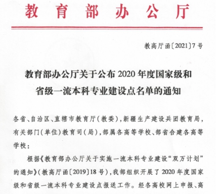 近日,教育部辦公廳公布2020年度國家級一流本科專業建設點名單。我校金融學、物流管理、法學、工商管理和會展經濟與管理5個專業榮獲2020年度國家級一流本科專業建設點認定。