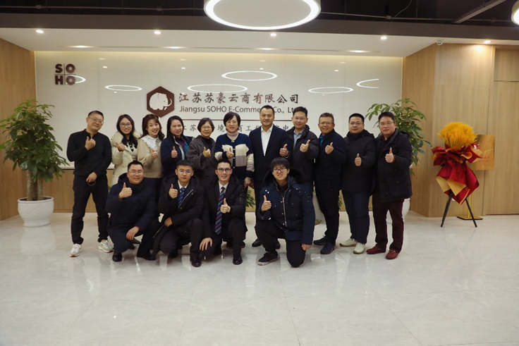 會后,校友們和學校老師參觀了江蘇蘇豪云商有限公司。江蘇蘇豪云商有限公司堅持“數字化、科技化、國際化、品牌化、平臺”的發展戰略,融合線上線下,開拓國內國外雙市場,致力打造一個跨境電商龍頭企業、探索一條江蘇特色的國企電商發展道路、構建一個跨境電商新生態系統,力爭成為江蘇跨境電商引領者。會長溫金偉講述了其發展歷程以及途中遇到的困難、挫折以及現在的成就。跨境電商與對外經貿密不可分,就像各地校友會與母校的關系一樣,相信在新會長的帶領下,江蘇校友會能夠持續發展,不斷提升影響力,為校友成長、母校建設和地方發展做出貢獻。