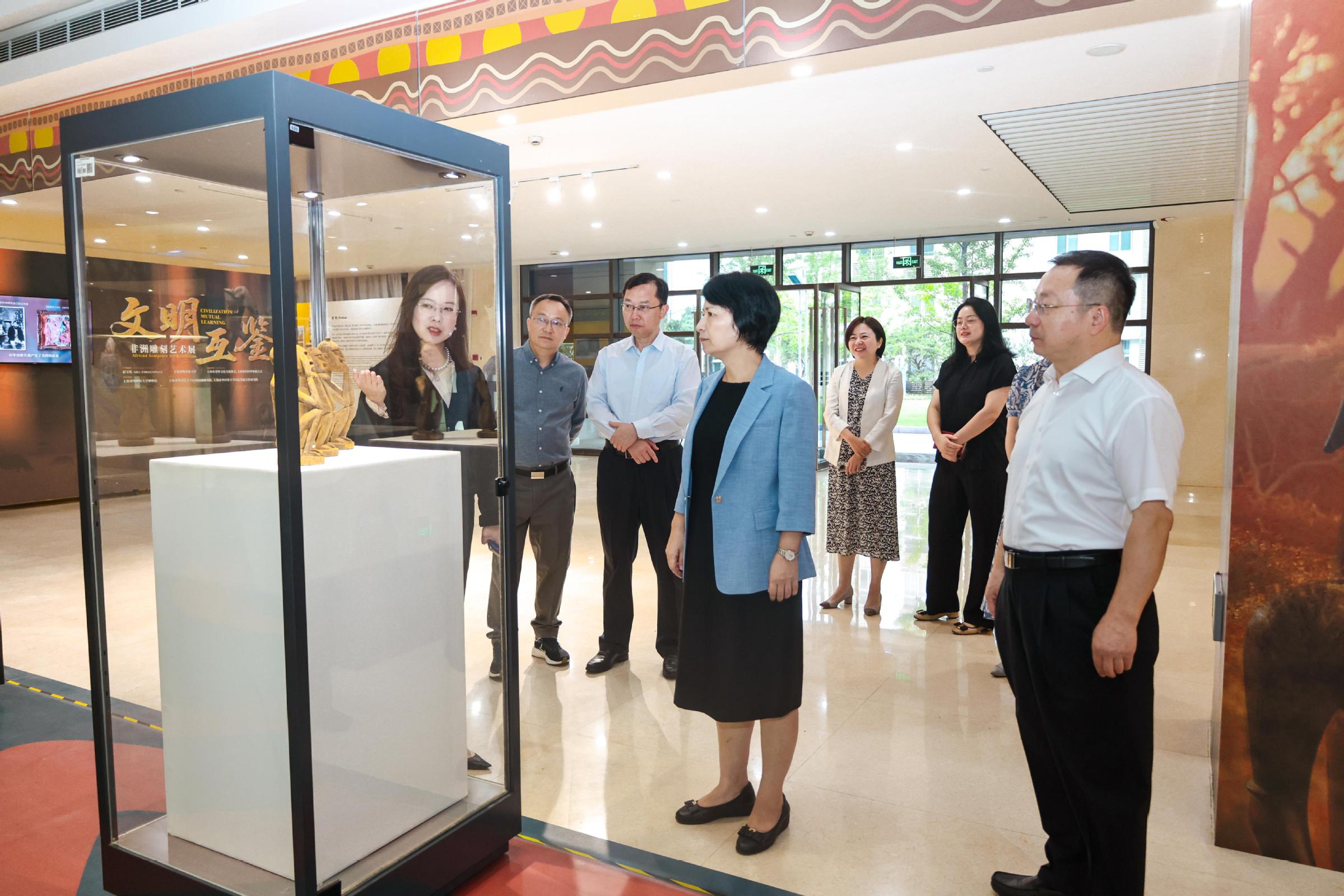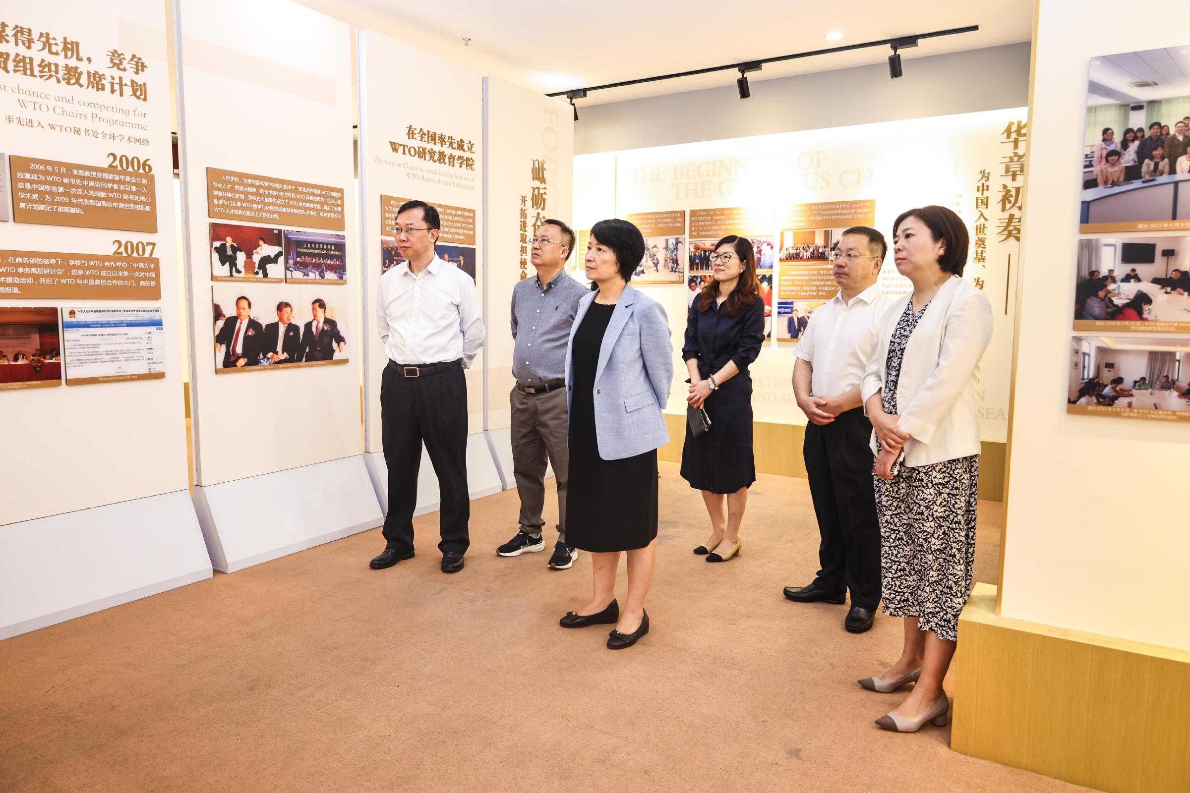 會前,梅兵、雷啟立一行參觀調(diào)研了學(xué)校博物館展覽、國際經(jīng)貿(mào)創(chuàng)新與治理研究院暨決策咨詢研究基地、WTO亞太培訓(xùn)中心等場所,相關(guān)單位負責(zé)人陪同講解。
