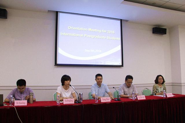 9月8日下午,我校2016級留學生培養(yǎng)說明會在松江校區(qū)圖文信息樓530室順利召開。校研究生院楊浩副院長、國際交流學院徐東風副院長、國際經貿學院何歡浪副院長、工商管理學院閻海燕副院長和法學院蔡建敏副院長出席,同來自美國、韓國等15個國家的21名2016級留學生做了親切交流。說明會由徐東風副院長主持。