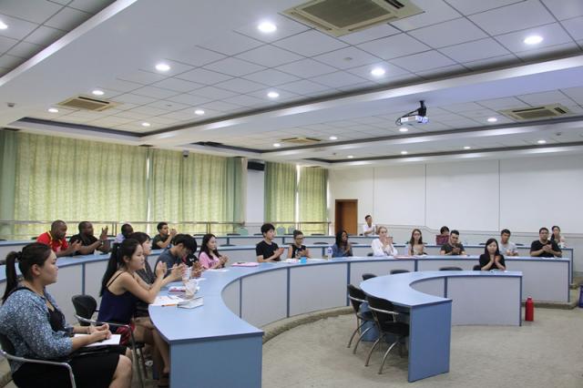 校研究生院楊浩副院長首先代表上海對外經貿大學對來自世界各地的留學新生表示最熱烈的歡迎。楊主任向留學生們講述了上海對外經貿大學半個多世紀以來的發(fā)展歷程,并重點介紹了學校各專業(yè)的特點和研究生培養(yǎng)情況。隨后,徐東風副院長給大家介紹了學校近年來在國際交流方面取得的豐碩成果,同時鼓勵留學生們勤勉奮進,以校為家。