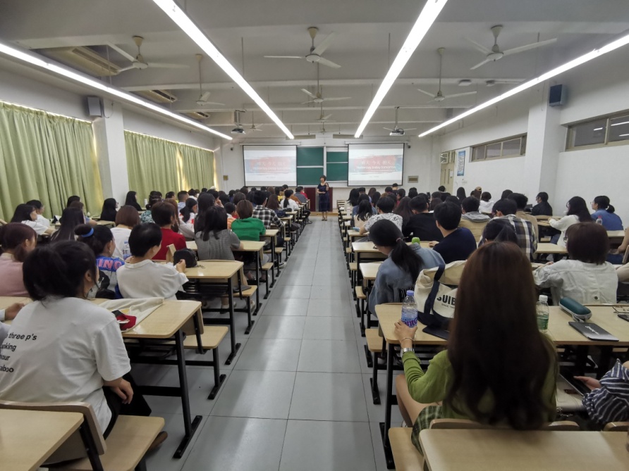 10月10日上午國際商務外語學院2019級全體新同學在學思樓B104聆聽了朱龍妹老師的全英文講座,收獲滿滿,讓同學們感受到了上海對外經貿大學教師的風采。