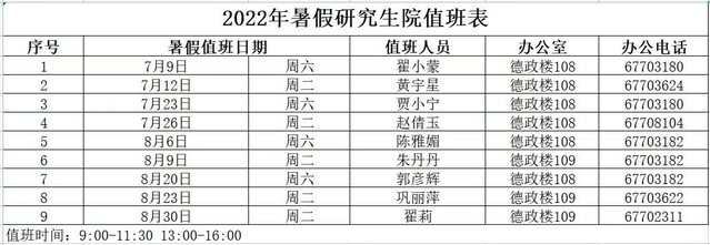 4、暑假期間請在值班時間內到相應的辦公室辦理,具體值班時間如下: