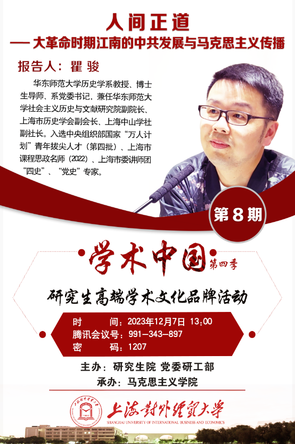 學術中國(第四季)第8期講座:人間正道—大革命時期江南的中共發展與馬克思主義傳播