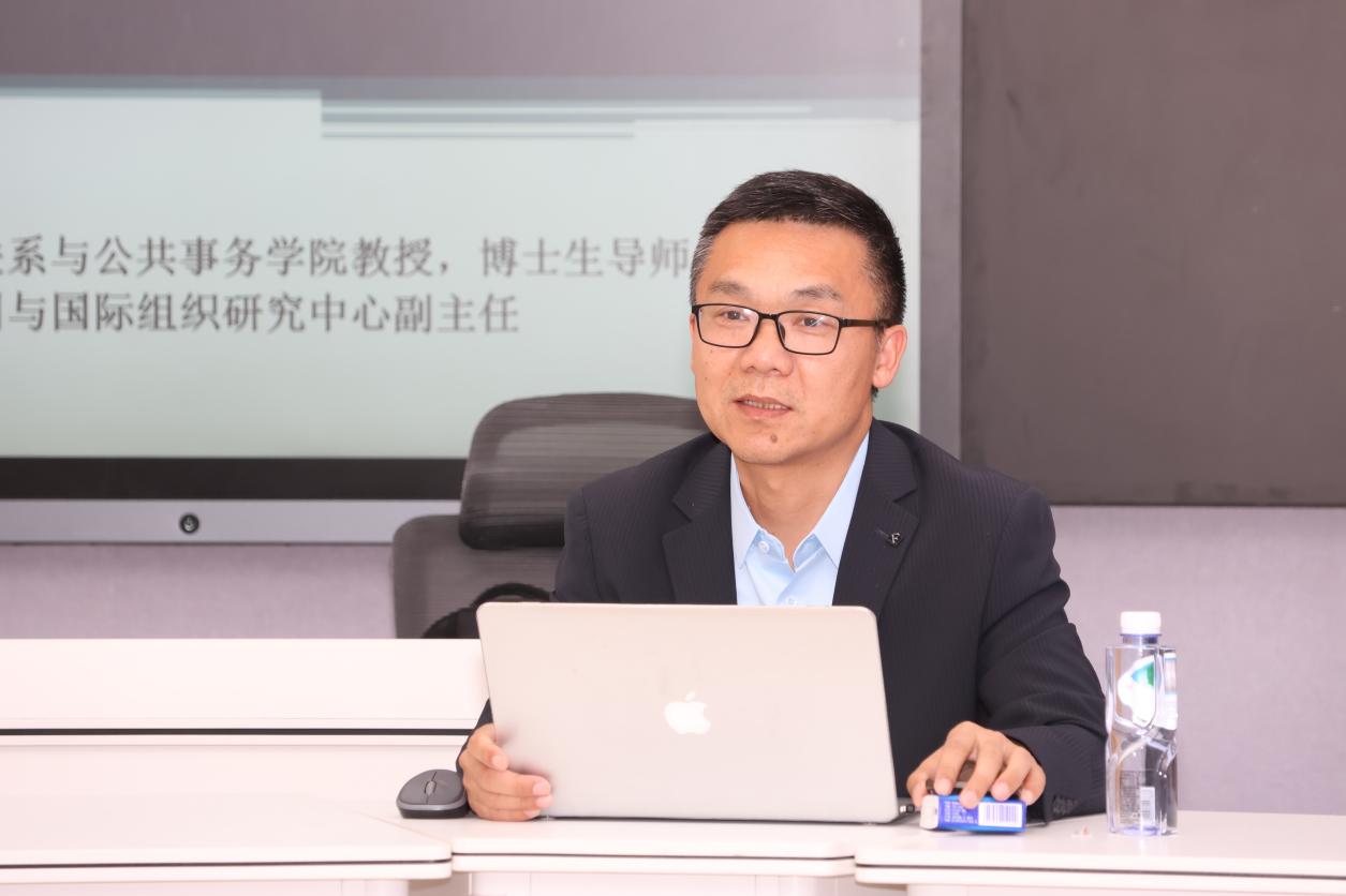 5月27日下午,由研究生院、黨委研工部主辦,國際組織學院(貿易談判學院)承辦的“學術中國”(第六季)第4期暨“國際組織與全球治理大講堂”講座如期開展。復旦大學國際關系與公共事務學院教授、博士生導師,復旦大學聯合國與國際組織研究中心副主任朱杰進為師生開設“大金磚合作的機遇與挑戰”主題講座。講座由國際組織學院(貿易談判學院)副院長王瑞領主持。