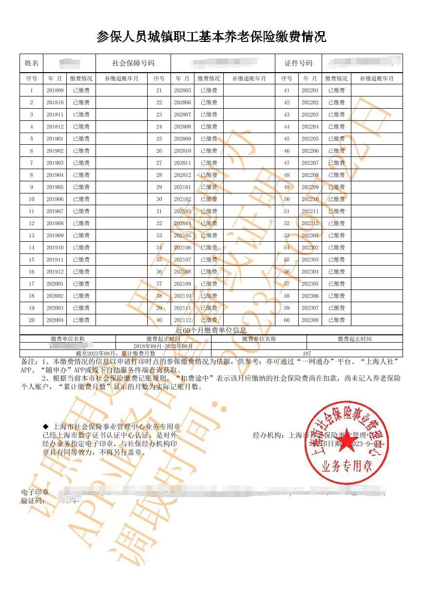 附件4:《參保人員城鎮職工基本養老保險繳費情況》樣張.png