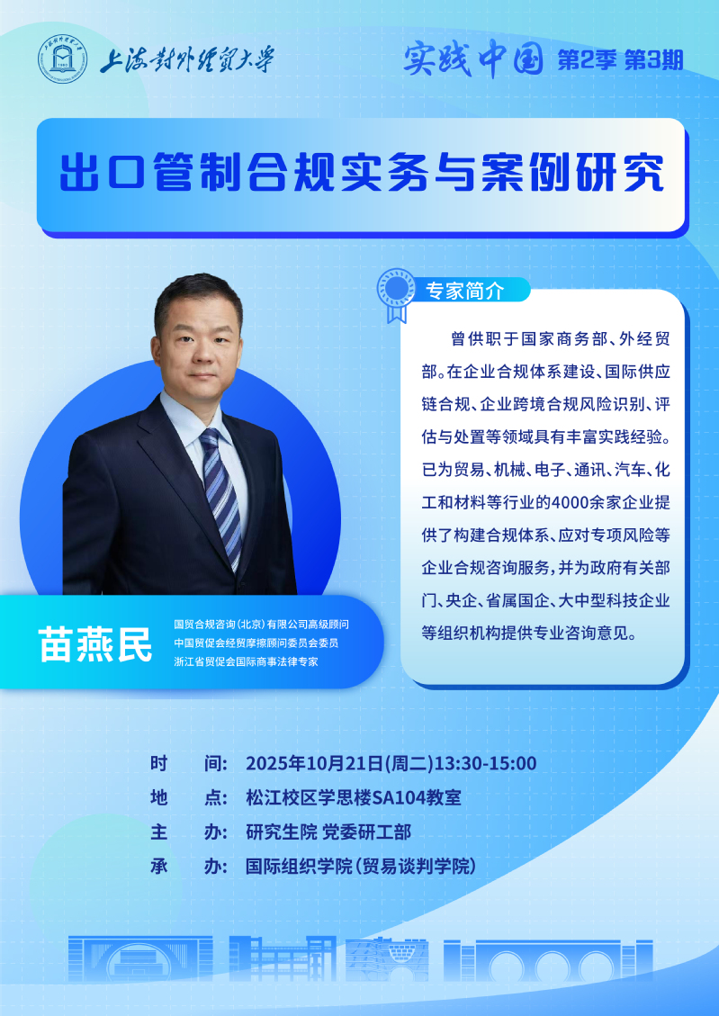 實踐中國(第2季)第3期講座—出口管制合規實務與案例研究